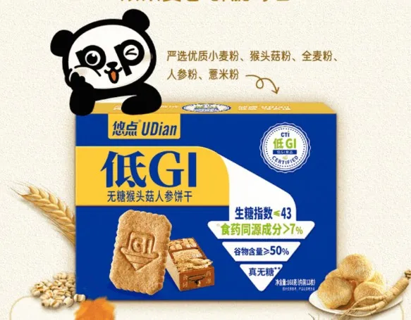 自客岁推出包罗“领鲜低GI养分欧包”、“低GI无糖燕麦高纤饼干”等正在内的多款低GI系列产物以来,盼盼食物本年仍正在扩充以上品类“低GI”矩阵,日前,盼盼食物另正在号中官宣“低GI无糖猴头菇人参饼干”相关产物,并对其食药同源成分、谷物含量等进行强调。另据电商平台显示,除该产物之外,盼盼旗下商品还涵盖“低GI无糖桑椹黑芝麻饼干”等。